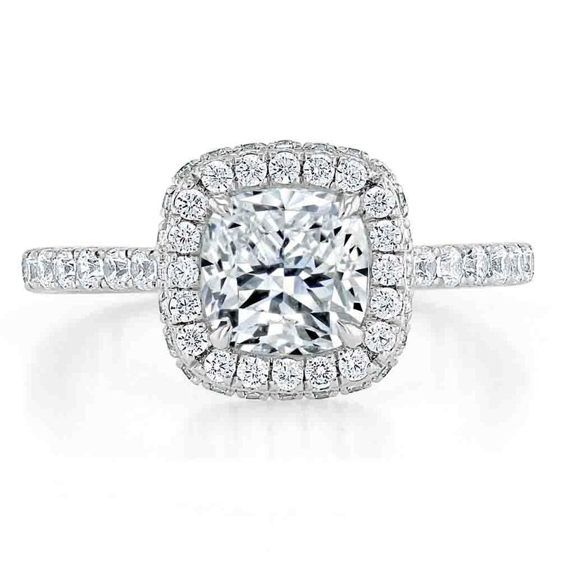 Cushion Cut Moissanite Halo Engagement Ring, Tiffany Style